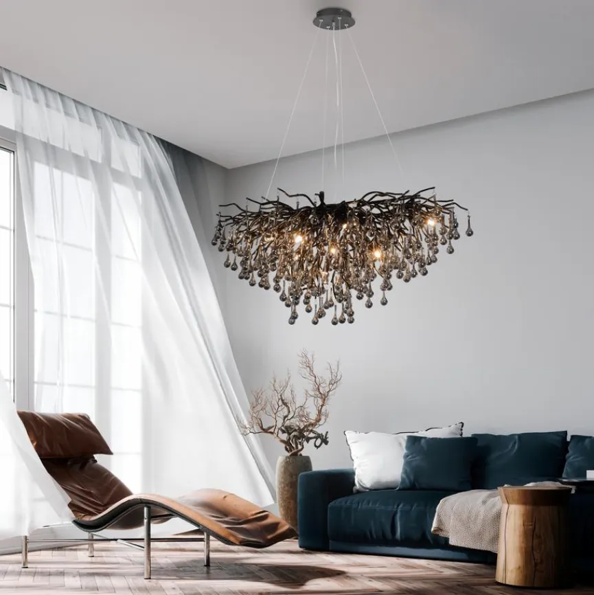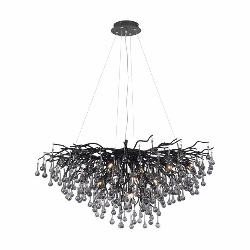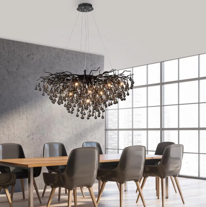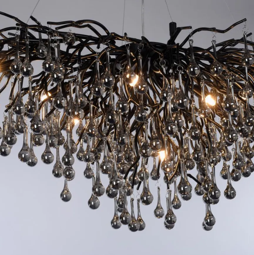 Die Pendelleuchte Icicle von Paul Neuhaus bringt zeitgemäßen Charme, Glamour und Extravaganz mit sich. Tropfenförmige Gebilde aus Glas, die an filigranen Verästelungen befestigt sind, verhelfen dieser Pendellampe zu ihrer exquisiten Ästhetik. In einem puristischen Ambiente kann die Pendelleuchte Icicle besonders aufregend zur Geltung kommen.