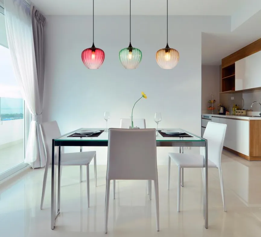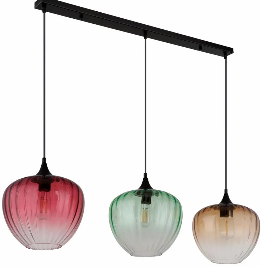 Die Pendelleuchte Solveig von Globo begeistert mit ihren drei kunstvoll gerieften Glasschirmen in unterschiedlichen Farbnuancen. Die harmonische Kombination aus dem Gestell und den transparenten, farbigen Glaskörpern schafft bei der Pendellampe eine besonders stimmungsvolle Atmosphäre in Ihrem Zuhause. Jeder Schirm der Pendelleuchte Solveig umhüllt eine dekorative Glühbirne, die das Licht sanft durch das strukturierte Glas streuen lässt.