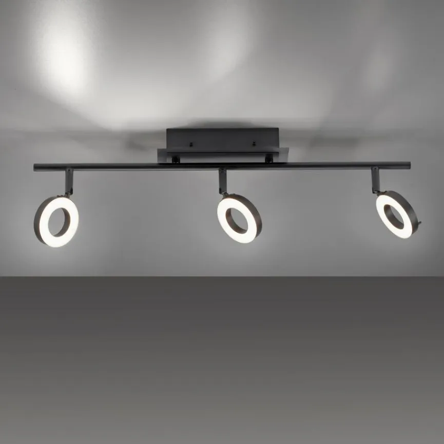 Sein edles Design macht den Strahler von Paul Neuhaus zum ansprechenden Blickfang für Ihr Zuhause. Diese moderne Deckenleuchte besteht aus drei Spots in Form metallener Ringe, die Sie individuell positionieren können. So schaffen Sie mit dem Strahler im Wohnzimmer, Flur oder Büro Ihr individuelles Lichtkonzept.