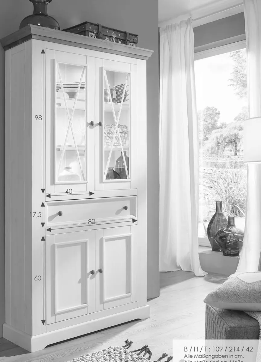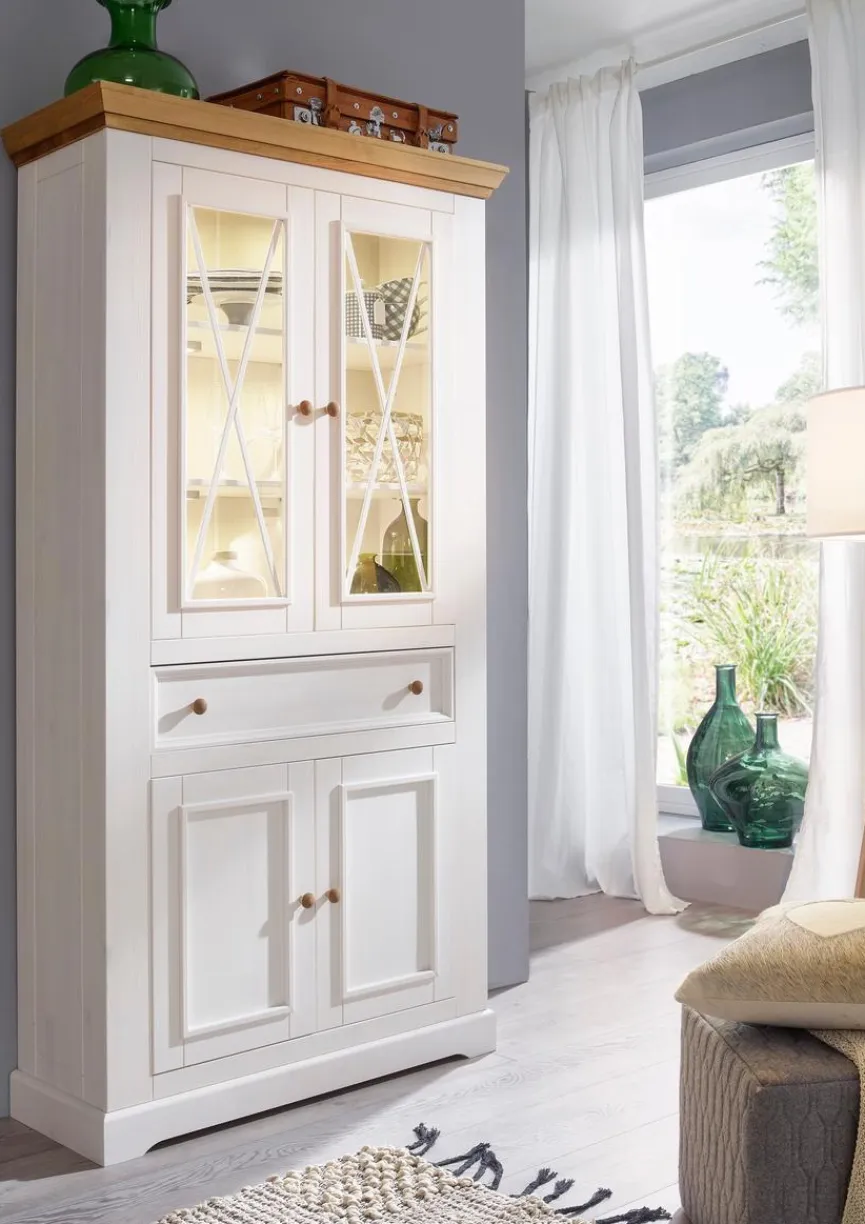 Die attraktive Vitrine Minnesota besitzt durch Ihre Kombination aus Echtholz und Glas einen ganz eigenen Charme. Außerdem bietet die Glasvitrine reichlich Platz und lässt sich vielseitig benutzen, zum Beispiel für Bücher, Dekoration und mehr. Auch hinsichtlich ihrer Verarbeitung lässt die Vitrine Minnesota keine Wünsche offen.