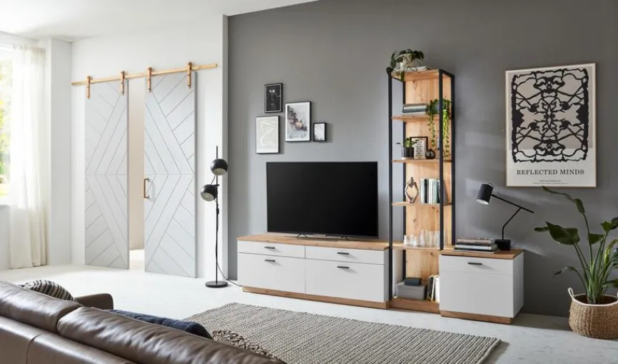 - Wohnwand bestehend aus TV-Lowboard, Regal und Kommode