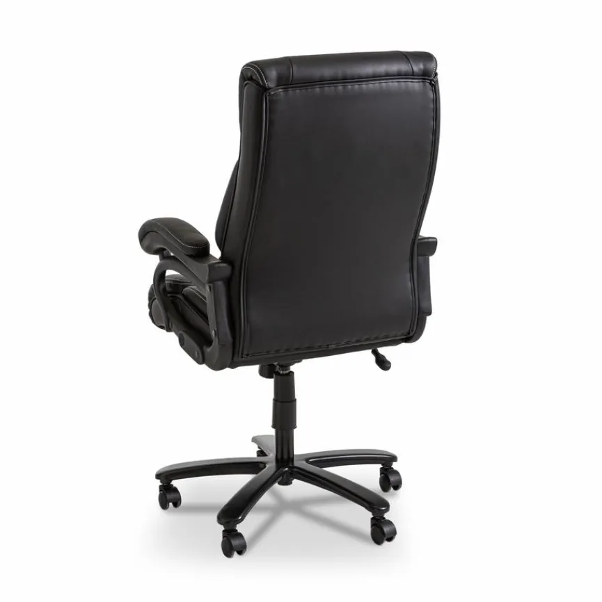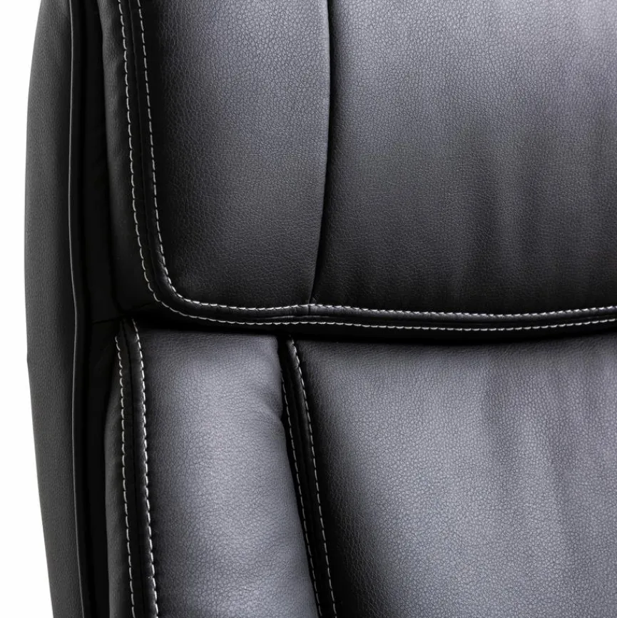- Bezug aus pflegeleichter Lederoptik in schwarz mit Kontrastnähten in weiß, Gestell aus Metall in schwarz
