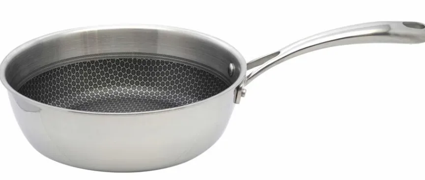 Köche, Küchenfeen, Foodies und Gourmets sind von der Sauteuse Relief Evolution Ø 24 cm von ELO begeistert. Diese fantastische Bratpfanne ist aus Edelstahl und punktet im Inneren mit einer Waben-Struktur, die krosses Anbraten ermöglicht und gleichzeitig als Antihaftbeschichtung wirkt. Egal, ob Sie Fleisch, Fisch, Meeresfrüchte oder Vegetarisches zubereiten möchten, die hitzebeständige Sauteuse Relief Evolution Ø 24 cm sorgt für ein exzellentes Ergebnis.