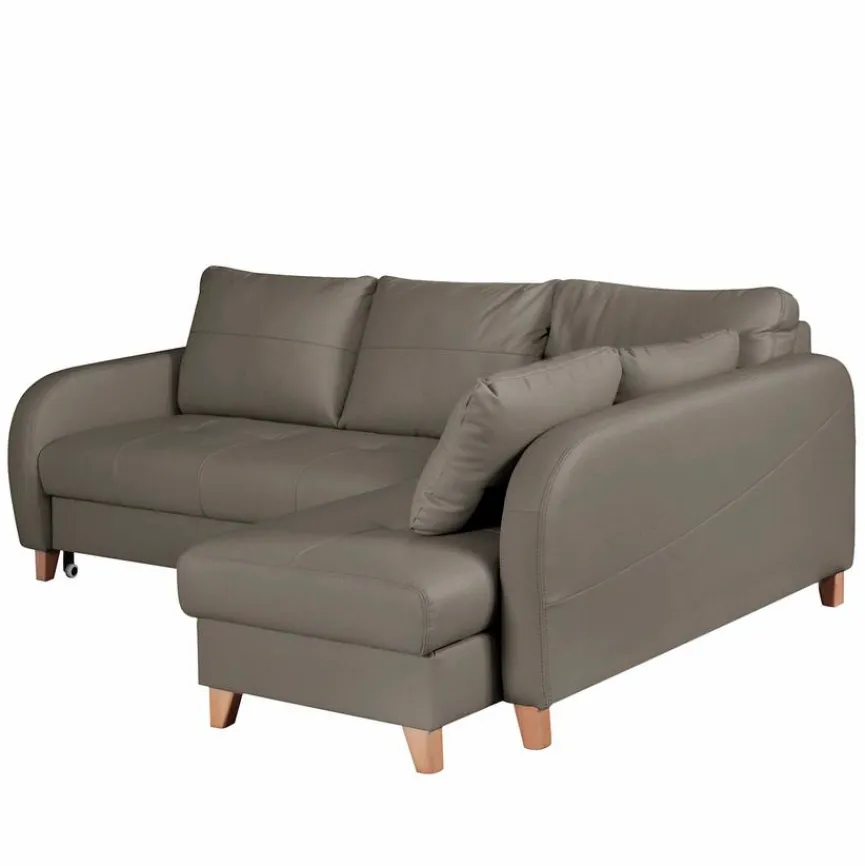 - Sitzbezug aus Leder (Madras) in dunkelgrau (519), Korpusbezug aus Lederoptik in dunkelgrau (519), Füße aus Holz