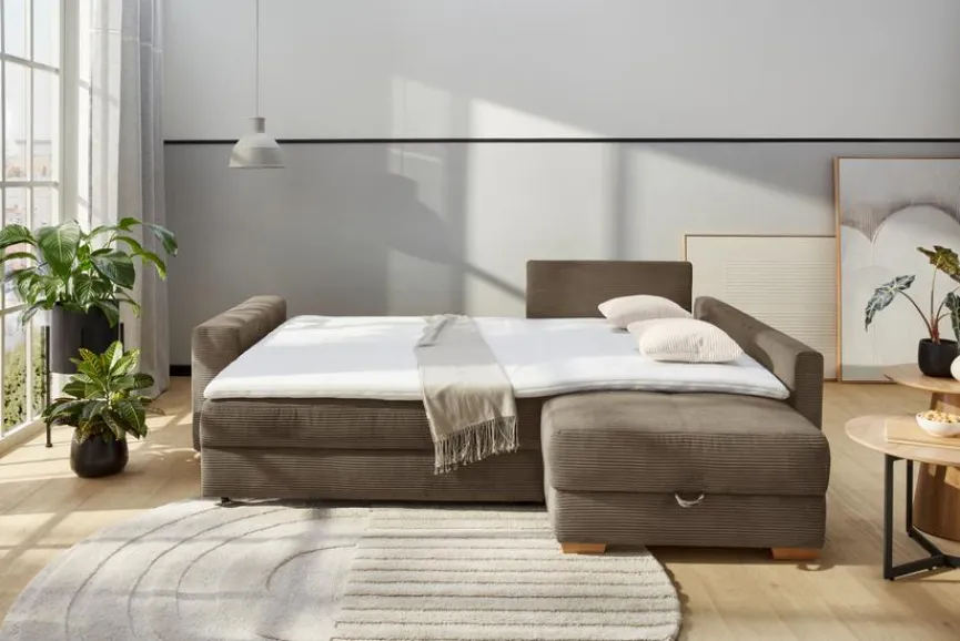 - Inkl. Schlaffunktion durch Frontauszug im 2-Sitzer und Stauraum in der Ottomane