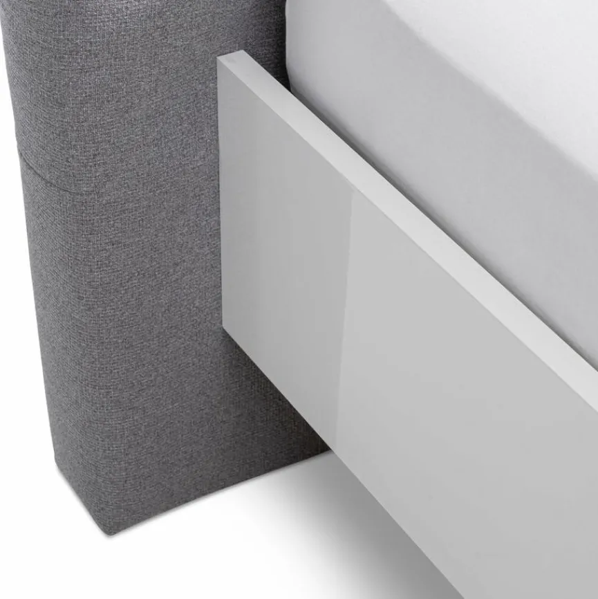 - Bett inkl. Polsterkopfteil mit Stoffbezug in grau