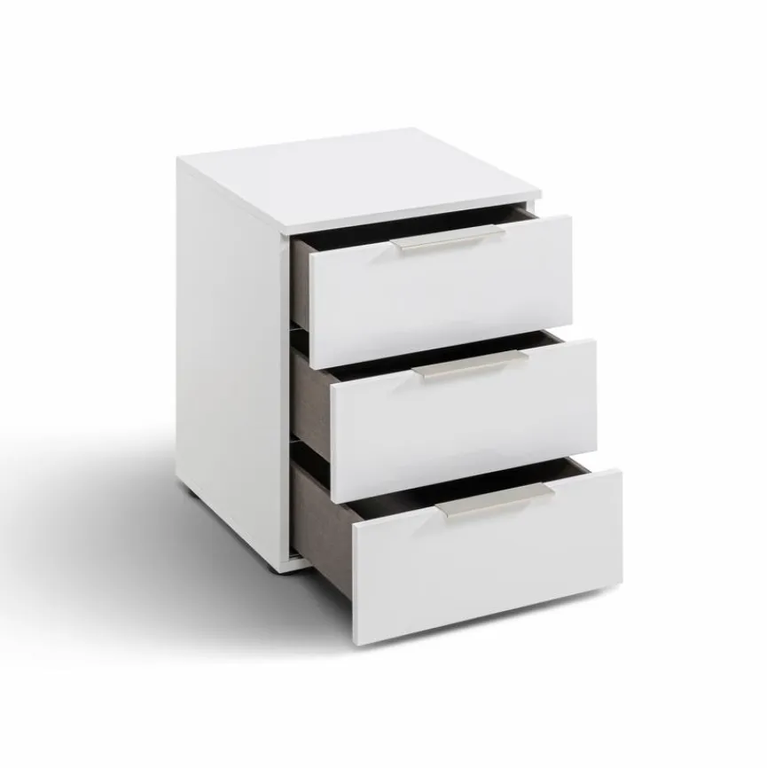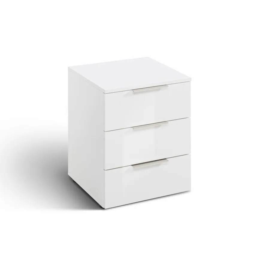 - Aus Spanplatte mit Melamin in weiß hochglanzlackiert