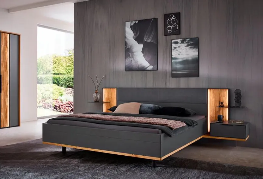 - Bett inkl. Polsterkopfteil mit Stoffbezug in anthrazit