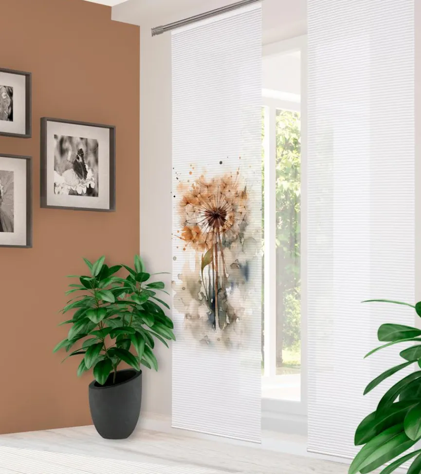 Mit dem Schiebevorhang Amarande von Schmidt lässt sich ein modernes Wohlfühlambiente zaubern. Das Pusteblumenmotiv auf dem Flächenvorhang sieht fabelhaft aus und bringt eine natürliche, elegante Optik ins Ambiente. Nutzen Sie den Schiebevorhang Amarande als stilvolle Fensterdekoration, die Tageslicht in den Raum lässt und gleichzeitig für eine ausreichende Privatsphäre sorgt.