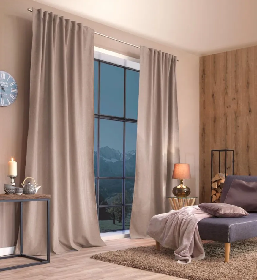 Mit der Fertiggardine Thermo 135×245 cm können Sie Ihr Fenster oder Ihre Balkontür hübsch dekorieren und sich zudem vor allzu neugierigen Blicken schützen. Bei niedrigen Außentemperaturen hält dieser Vorhang darüber hinaus die Kälte draußen. Die praktische Fertiggardine Thermo 135×245 cm kann ohne weitere Vorarbeiten direkt an einer vorhandenen Gardinenstange aufgehängt werden.
