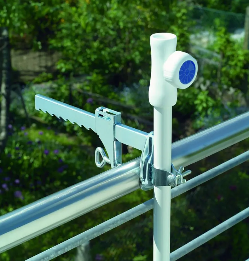 - Für Unterstöcke bis 38 mm Ø nur bei zusätzlicher Verwendung eines Balkonständers oder zweiter Balkonklammer zulässig