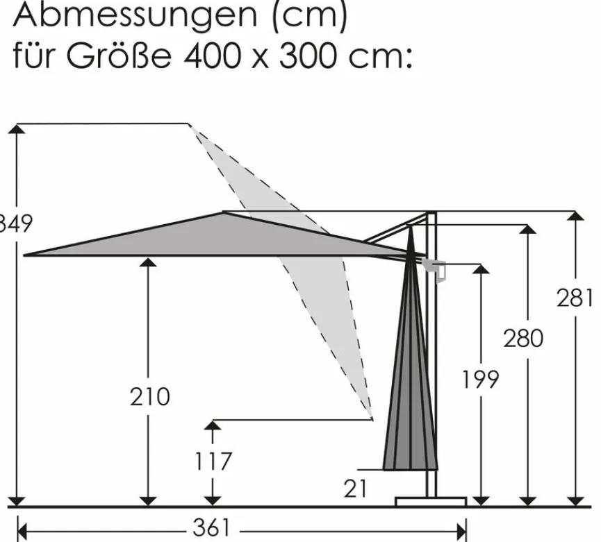 Genießen Sie den Sommer unbeschwert mit dem Pendelschirm Rhodos Twist 25 300×400 cm von Schneider Schirme. Der hochwertige Sonnenschirm ist neigbar, kann beidseitig gekippt und rundum gedreht werden und bietet damit wohltuenden Schatten in jeder gewünschten Position. Mit dem Pendelschirm Rhodos Twist 25 300×400 cm bewahren Sie sich nicht nur vor schädlichen Sonnenstrahlen und Hitze, Sie schaffen auch einen attraktiven Blickfang.