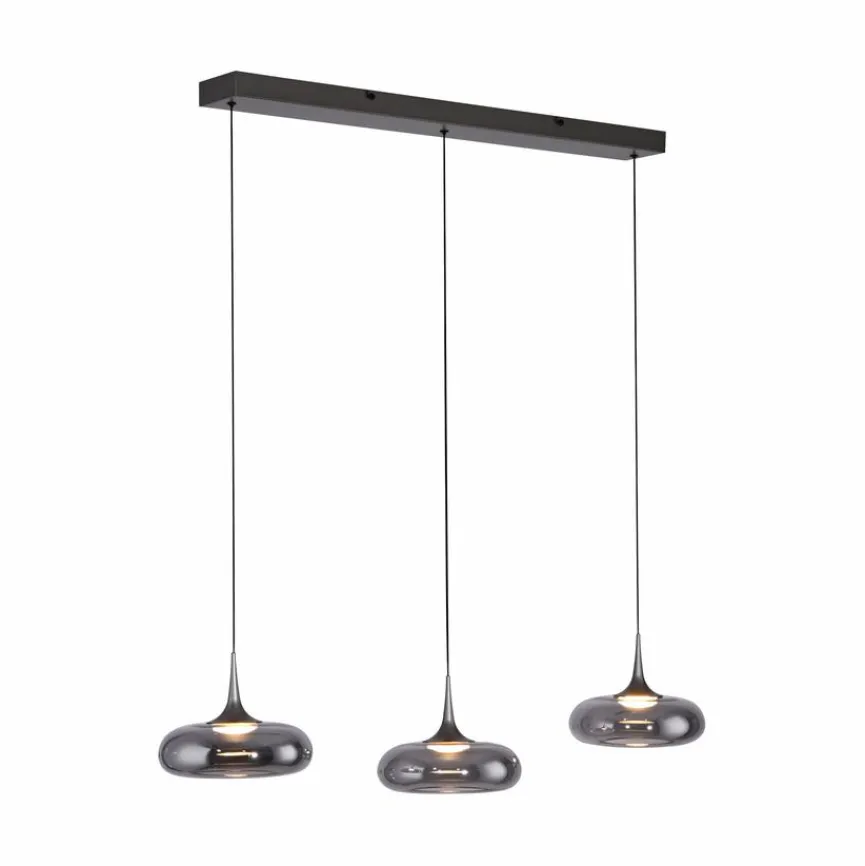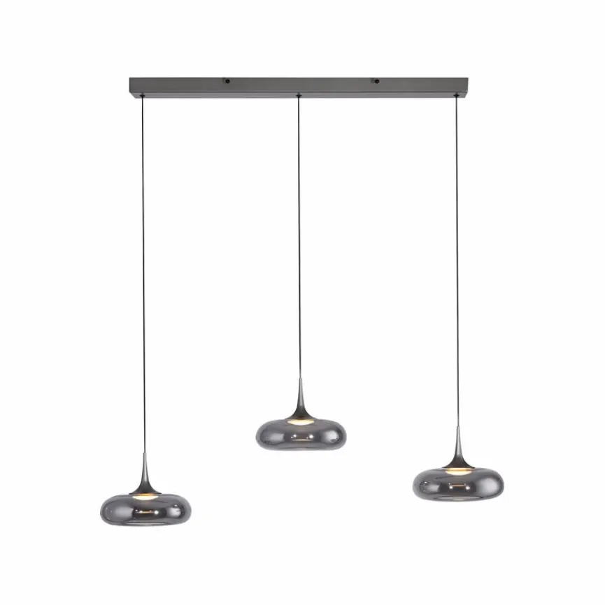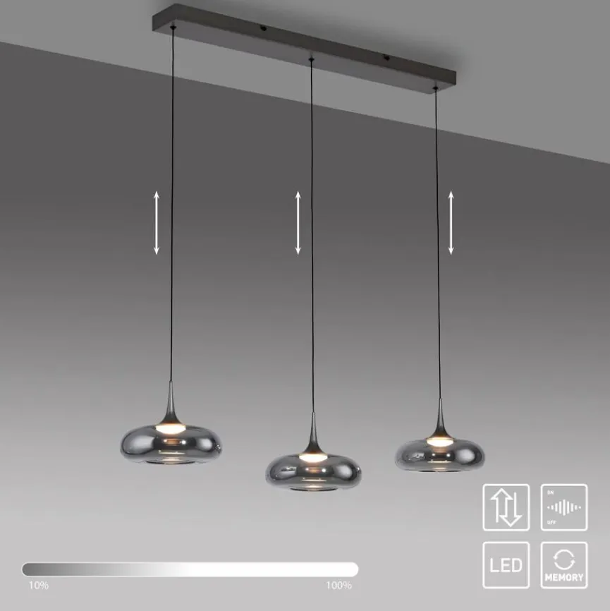 Hinter den drei Ufo-förmigen Glasschirmen der LED-Pendelleuchte Posh aus der SCHÖNER WOHNEN-Kollektion befinden sich fest verbaute LEDs, die Helligkeit in einen Raum oder über einen Tisch bringen. Mit ihrem wohnlichen Charakter ist die LED-Pendelleuchte Posh bestens für das Wohnzimmer geeignet. Da sie sich längs ausrichten lässt, ist die LED-Pendellampe auch für schmale Flure eine gute Wahl.