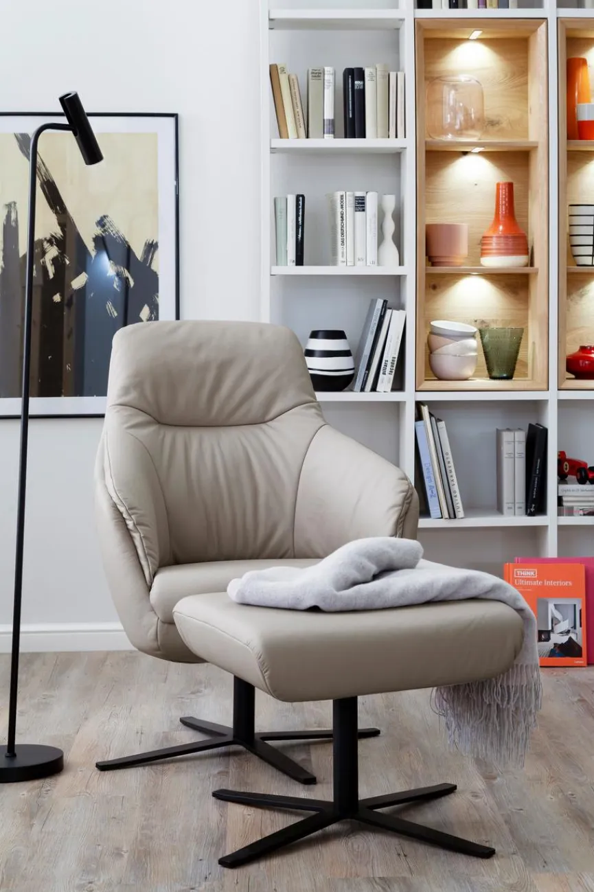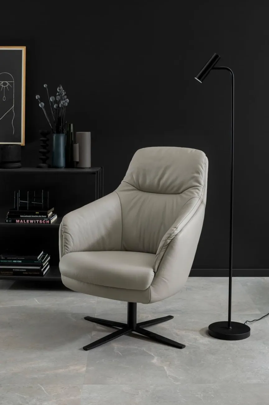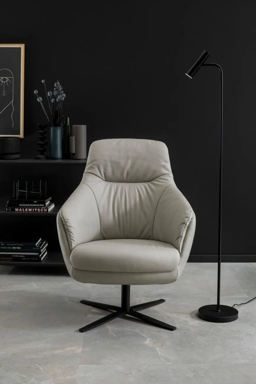- Bezug aus Leder (Life Line) in light grey, Sternfuß schwarz matt (469)