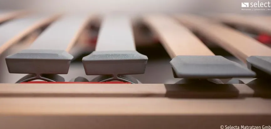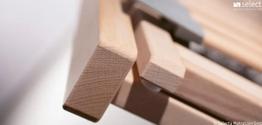 - Höhenverstellbare Federholzleisten im Kniebereich zur Feinjustierung der Schlafposition