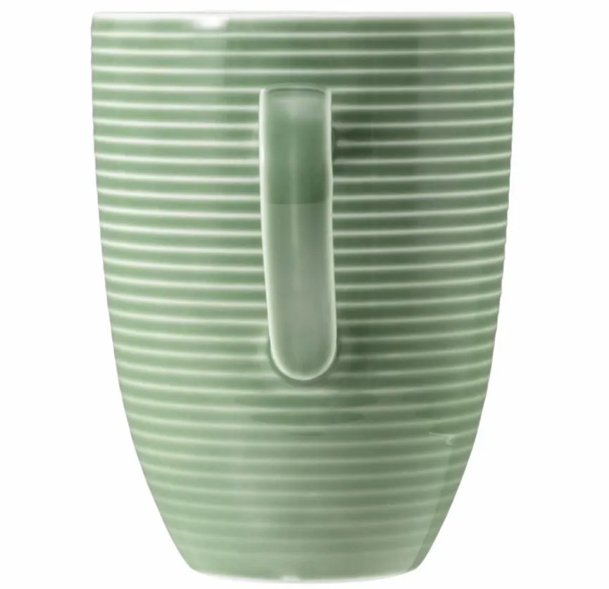 Der Kaffeebecher Beat 350 ml lässt an die schöne Schallplattenzeit denken. Ein spezielles Relief verleiht dieser Kaffeetasse diesen charaktervollen Look. Damit bietet sich das Geschirr beispielsweise wunderbar für ein angesagtes Scandi-Umfeld an. Reinigen lässt sich der Kaffeebecher Beat 350 ml ganz simpel in der Spülmaschine.