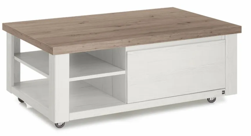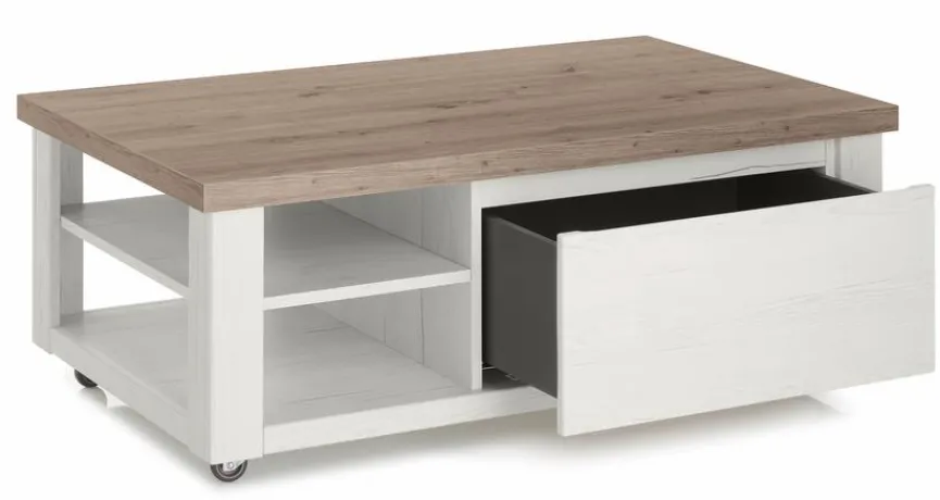 - Mit 1 Schubkasten und 2 offenen Fächern