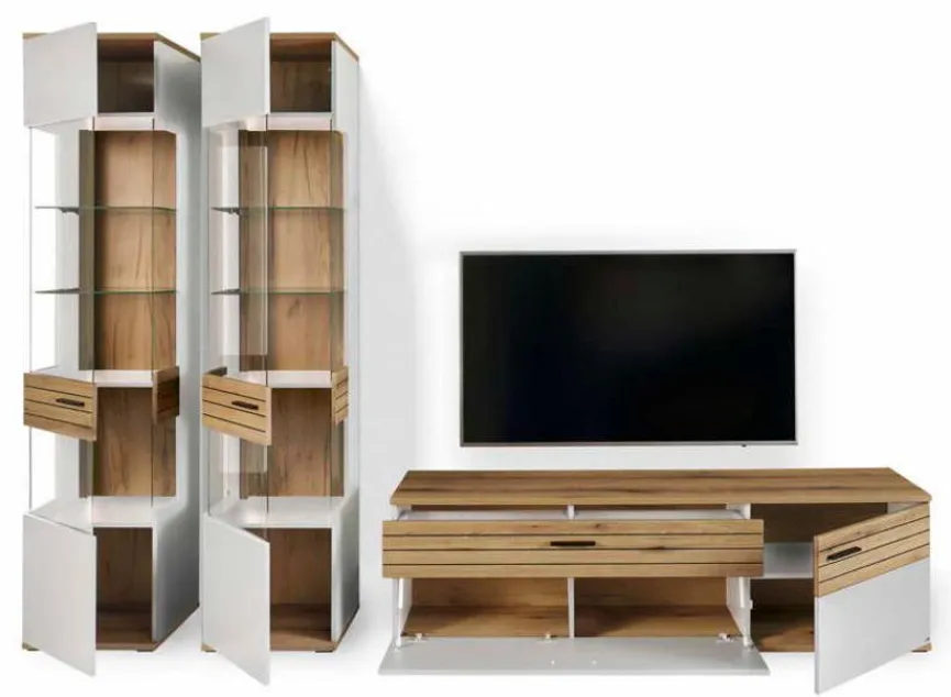 - Bestehend aus 2x Vitrine und 1x TV-Lowboard