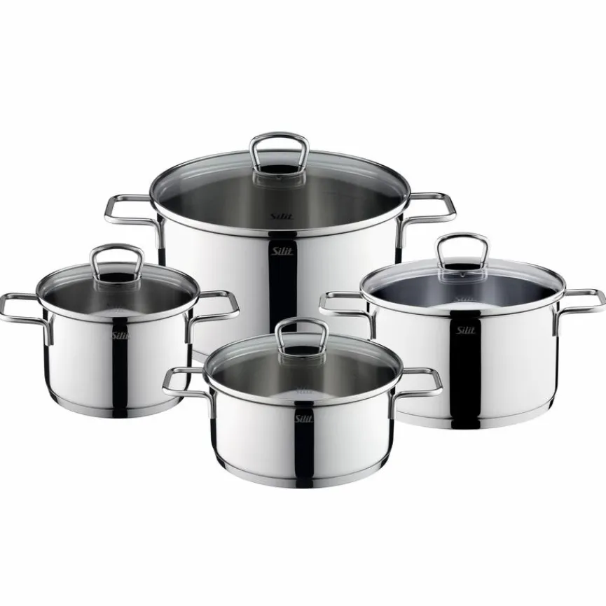 Für die Zubereitung verschiedenster Speisen eignet sich das Topfset Alicante 4tlg. der Marke Silit hervorragend. Zu diesem Kochtopfset gehören drei unterschiedlich große Fleischtöpfe mit Deckeln sowie eine Stielkasserole ohne Deckel. Da die Deckel durchsichtig sind, behalten Sie den Inhalt während des Garens im Silit Topfset Alicante 4tlg. bestens im Blick.