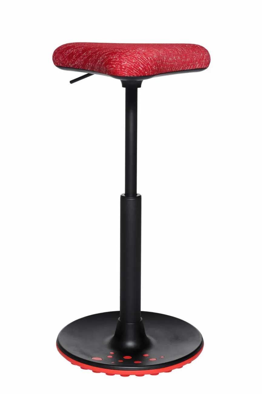 - Bezug aus Stoff in rot, Standfuß aus Kunststoff in schwarz mit Absetzung in rot