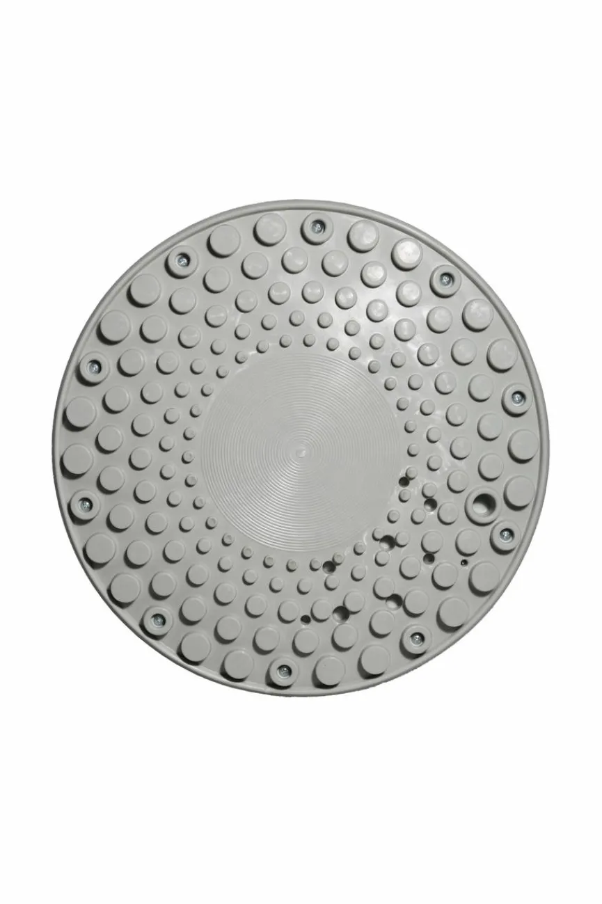 - Bezug aus Stoff in grau, Standfuß aus Kunststoff in schwarz mit Absetzung in grau