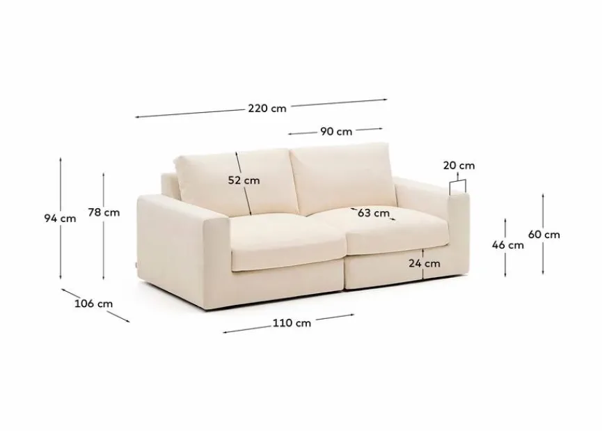 Farbe: EcruMaterial: StoffGröße: Breite: 220,00 cm, Höhe: 94,00 cm, Tiefe: 106,00 cm