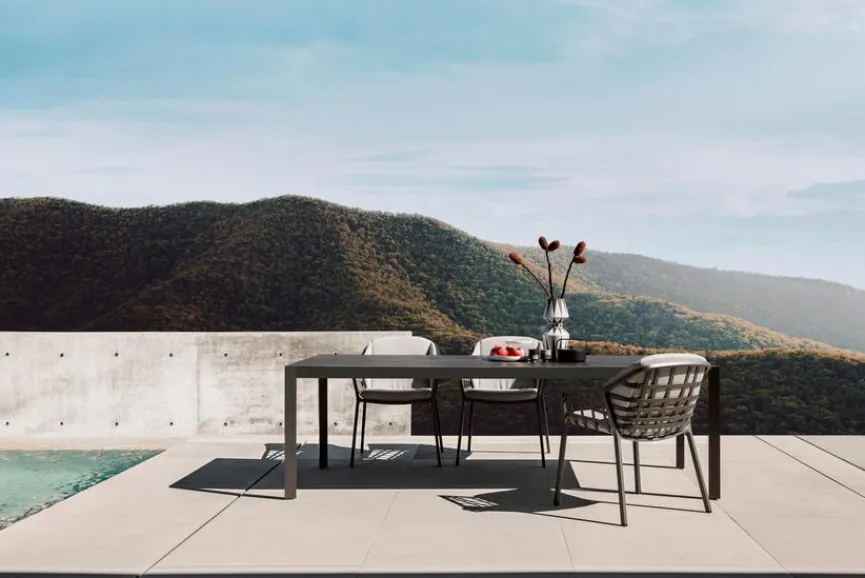 Formschönes Design trifft Stabilität und Langlebigkeit – Das wunderbar leichte Aluminiumgestell geht eine harmonische Verbindung mit HPL ein – einer dekorativen Hochdruck-Schichtpressstoffplatte mit Melaminharzdeckschicht. Dabei bestehen die Schichtstoffe vor allem aus dem nachwachsenden Rohstoff Papier und unter Wärme ausgehärteten Kunstharzen. Dieser gelungene Materialmix macht die Tischplatte besonders stabil, kratz- und stoßfest. Zudem ist sie herrlich pflegeleicht und weder Sonne, Wind noch Wetter können ihr etwas anhaben.