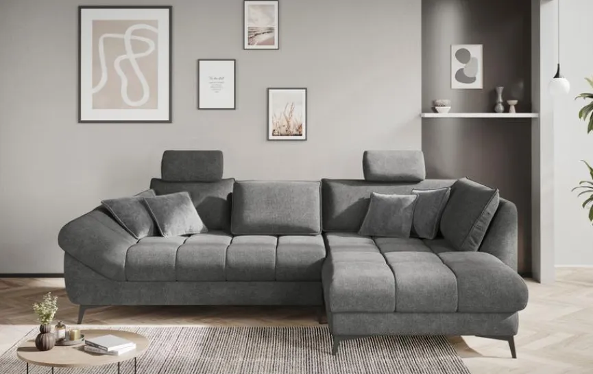- Inkl. 2 Zierkissen aus Stoff (Memphis) in stone (20) und 2 Armlehnkissen aus Stoff (Harmony) in stone (16)