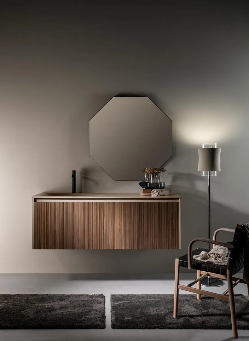 - Korpus aus Holzwerkstoff (MDF) mit hochwertiger Dekorfolie in Avana opaco matt lackiert