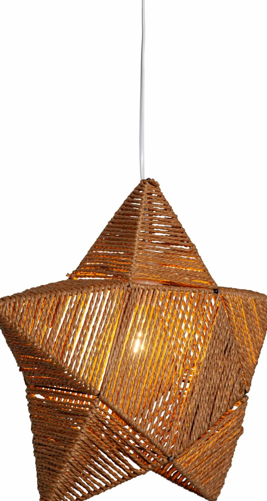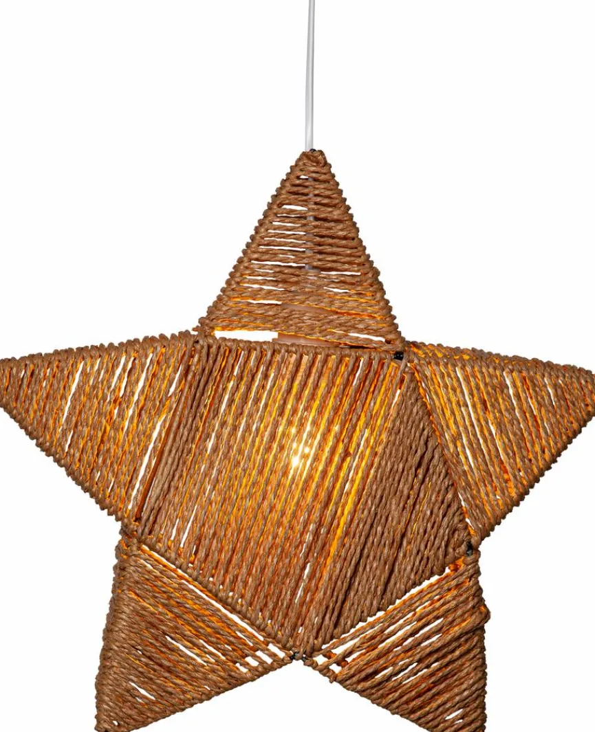 Die attraktive Pendelleuchte Rappe von Star Trading sorgt für eine gemütliche Atmosphäre im Wohnbereich. Insbesondere die kunstvoll umwickelte Sternenform verleiht dieser Pendellampe einen warmen und rustikalen Look. Daher eignet sich die Pendelleuchte Rappe perfekt für weihnachtliche Dekorationen oder als ganzjähriger Blickfang zur Boho-inspirierten Einrichtung.
