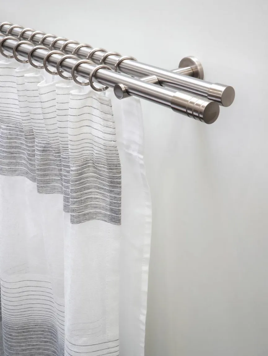 Mit der Stilgarnitur Zylinder 160 cm lassen sich kinderleicht kreative Ideen verwirklichen, denn die Doppelstange erlaubt es Ihnen, gleich zwei Vorhänge miteinander in Reihe zu kombinieren. Egal, ob Sie sich vor neugierigen Blicke schützen wollen oder einfach persönliche Akzente setzen möchten, die Stilgarnitur Zylinder 160 cm sorgt für müheloses Gleiten. Besonders gut passt sie zu modernen und reduzierten Wohnkonzepten.