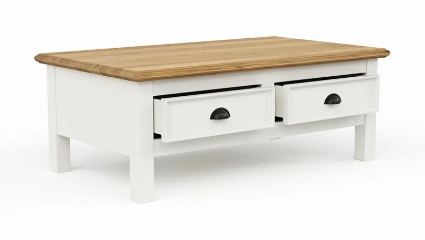 Der Couchtisch Barreiro begeistert durch eine attraktive Optik im typischen Landhausstil. Prägend für das Design des Wohnzimmertisches sind die gelungenen farblichen Kontraste und die geschmackvollen Formen. Darüber hinaus überzeugt der Couchtisch Barreiro durch eine hohe Verarbeitungsqualität. Im Inneren finden Sie praktischen Stauraum für verschiedene Gegenstände.