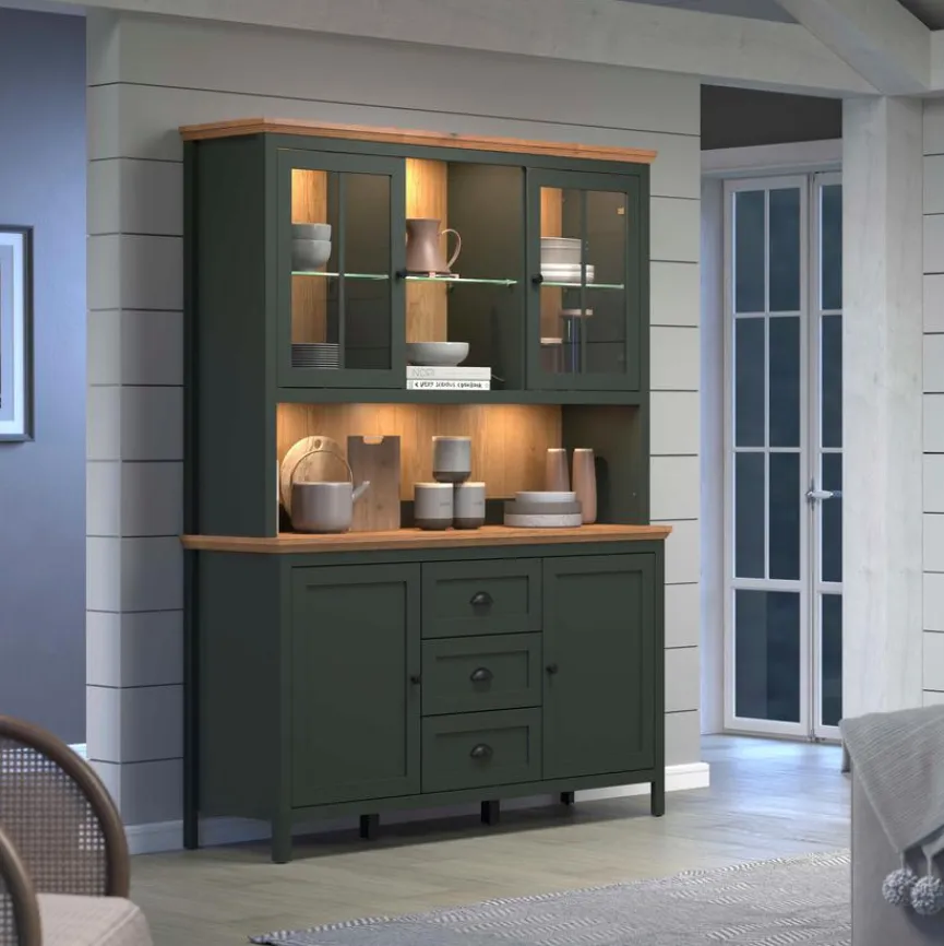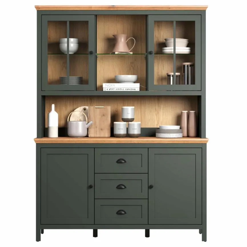 - Korpus aus Holzwerkstoff (Spanplatte) mit hochwertiger Dekorfolie in Tannengrün, Front aus Holzwerkstoff (MDF) mit hochwertiger Dekorfolie in Tannengrün