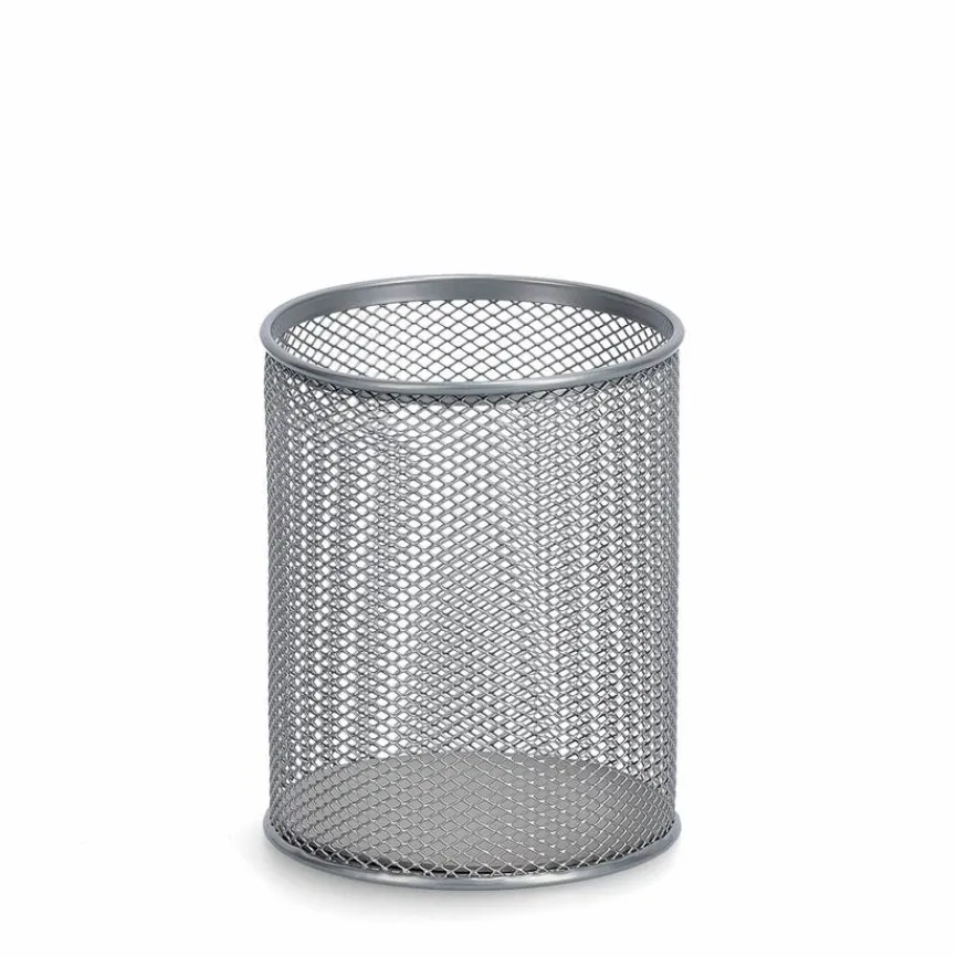 Als vielseitiger Aufbewahrungsbehälter hilft Ihnen der Utensilo Mesh Ø 11 cm im Handumdrehen für Ordnung auf Ihrem Schreibtisch zu sorgen. Sein zylindrisches Format mit großer Öffnung bietet viel Platz für Stifte und Lineale, die dort hineingesteckt werden können. Der Utensilo Mesh Ø 11 cm punktet außerdem mit seinem luftigen Drahtgeflecht, durch das Sie den Inhalt sofort erfassen und das ihm außerdem ein modernes Design beschert.