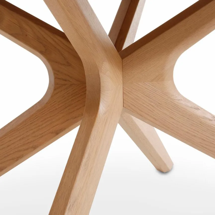 Der Esstisch V-Alpin aus dem Hause Voglauer verdankt seinen Namen der ausgefallenen Optik seines Gestells. Die vier Beine des Esszimmertisches von Voglauer sind in eben dieser Form gestaltet und laufen in der Mitte zusammen.