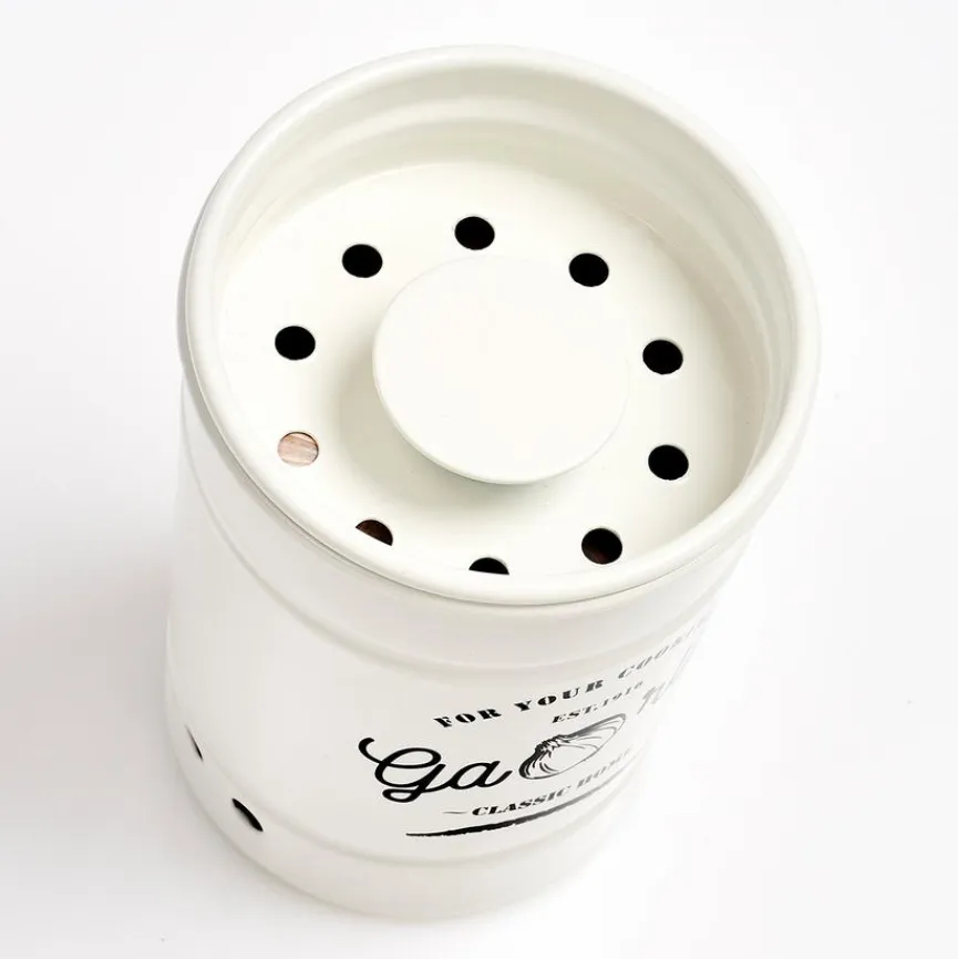 Mithilfe der hochwertigen Vorratsdose Garlic lagern Sie Ihre frischen Knoblauchzehen sachgerecht. Das Lebensmittel wird am besten trocken, dunkel und bei leichter Luftzirkulation aufbewahrt, denn so verlängert sich seine Haltbarkeit. Zudem überzeugt das hübsche, leicht nostalgisch anmutende Design der Vorratsdose Garlic, die damit auch in optischer Hinsicht punktet und als zweckmäßiges, dekoratives Haushaltsaccessoire eine rundherum gute Figur macht.
