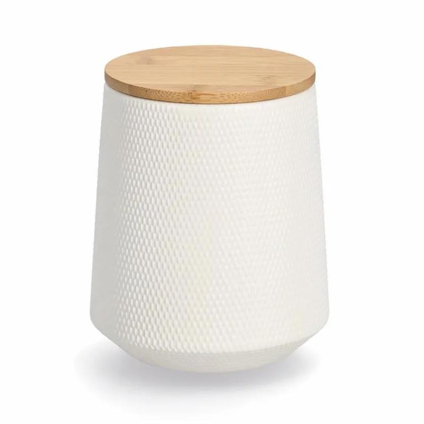 Egal, ob in der Küche oder im Bad, die Vorratsdose 1080 ml ist ein stilvolles Gefäß, um Kleinigkeiten fest verschlossen aufzubewahren. Ihre ungewöhnliche Form, die trichterförmig auseinander läuft und sich im unteren Teil wieder verjüngt, wirkt besonders apart und stilvoll. Durch die luxuriöse, wabenförmig alternierende Reliefstruktur ihrer Oberfläche erhält die Vorratsdose 1080 ml haptisch und optisch einen exklusiven Touch und avanciert zu einem außergewöhnlichen Design-Highlight.