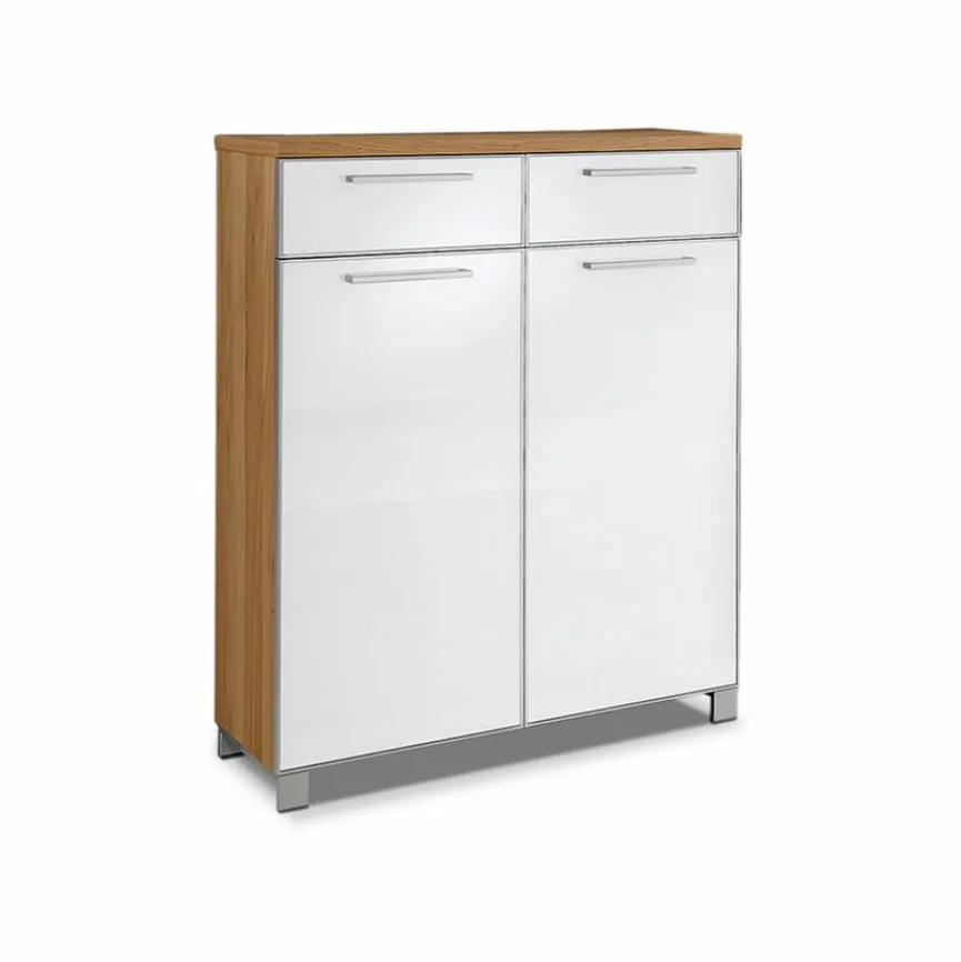 - Korpus aus Spanplatte mit Echtholzfurnier in Eiche bianco, Oberplatte aus Holzwerkstoff (MDF) mit Echtholzfurnier in Eiche bianco