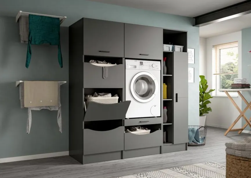 Das Waschmaschinenschrank-Set Lucca ist die ideale Umbauung für die Waschmaschine. Der optisch ansprechende Geräteschrank im vielseitig kombinierbaren Design integriert sie in den Einrichtungskontext von Küchen, Bädern und Wirtschaftsräumen. Mit praktischen Auszügen und einer stabilen Ablage erleichtert das Waschmaschinenschrank-Set Lucca die Haushaltsführung. Bequem zugängliche geräumige Fächer bieten Platz für Wasch- und Reinigungsmittel.