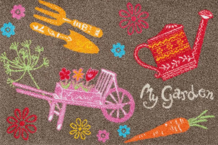 Die Fußmatte My Garden 50×75 cm von Wash+Dry ist rutschfest, flach gestaltet und begeistert mit einem originellen Look. Dargestellt sind auf dieser Schmutzfangmatte schönes Gemüse, Werkzeuge, Blüten und mehr. Als Geschenk für einen lieben Gartenfreund ist die Fußmatte My Garden 50×75 cm natürlich eine großartige Idee.