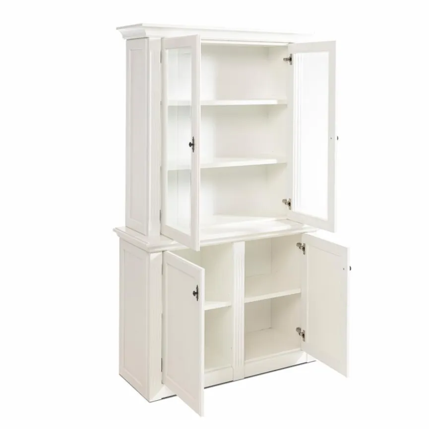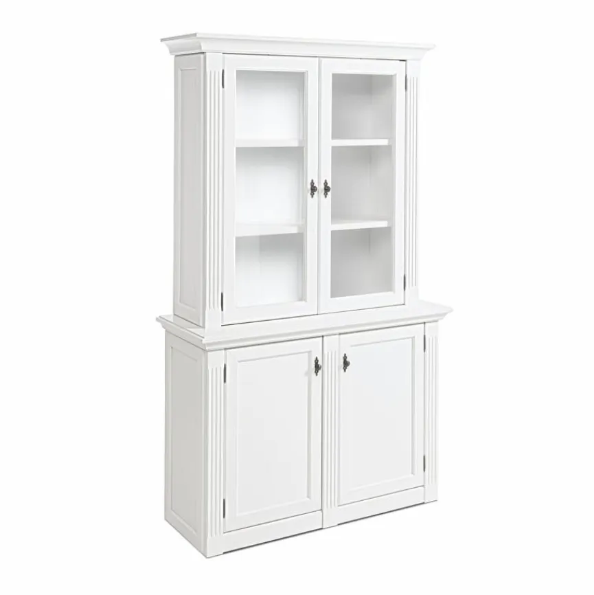 Mit dem Buffet Maisonette sichern Sie sich ein Küchenmöbel im klassischen Design, das unter anderem hervorragend zum Landhausstil passt. Der Buffetschrank wartet unter anderem mit zierenden Beschlägen und Fräsungen auf. In der Küche oder dem Esszimmer bietet das Buffet Maisonette mit seinem Vitrinenaufsatz die Möglichkeit, ein besonders hübsches Service oder Deko stilvoll zu präsentieren.