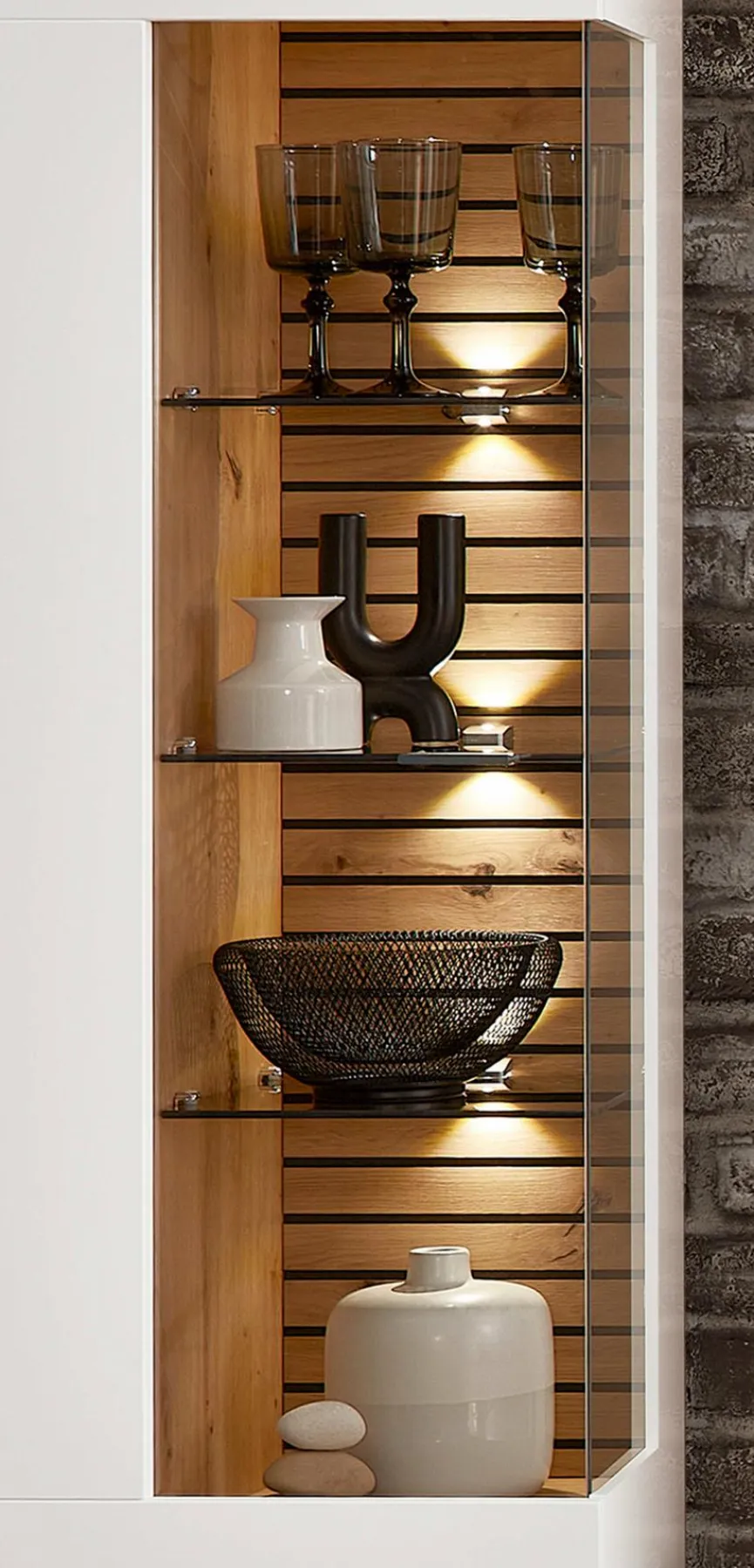 - Wohnwand aus Vitrine, TV-Lowboard und Wandpaneel
