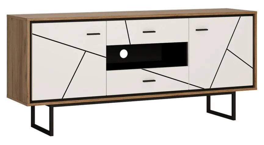 In und auf dem genauso praktischen wie gut aussehenden TV-Lowboard Brolo finden die Geräte und Utensilien für beste Unterhaltung ausreichend Platz. An der Rückwand des TV-Unterschrankes befindet sich eine Aussparung zum Durchstecken der Kabel. Statt auf vier Füßen steht das attraktive TV-Lowboard Brolo auf stabilen Kufen.
