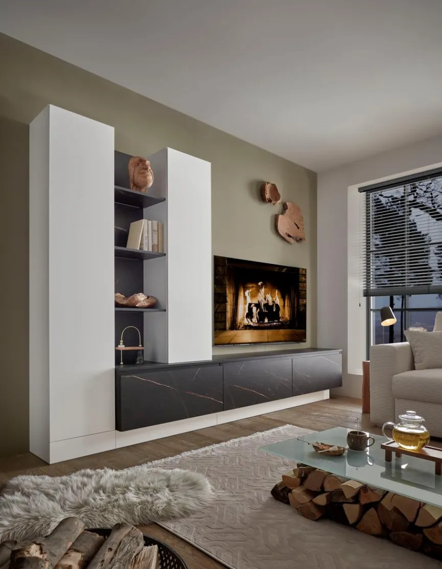 - Ausführung aus Holzwerkstoff (Spanplatte) mit kratzfester Melaminharzfolie in Alpinweiß