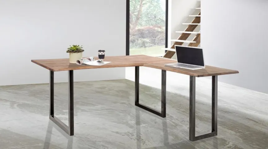 Der Eckschreibtisch Live aus dem Hause WOLFMÖBEL begeistert durch eine edle Optik. Mit dem gelungenen Zusammenspiel aus Massivholz und Metall sowie den markanten Formen erhält der Winkelschreibtisch ein ausgesprochen dekoratives Äußeres. Darüber hinaus ist der Eckschreibtisch Live wie von WOLFMÖBEL gewohnt exzellent verarbeitet.
