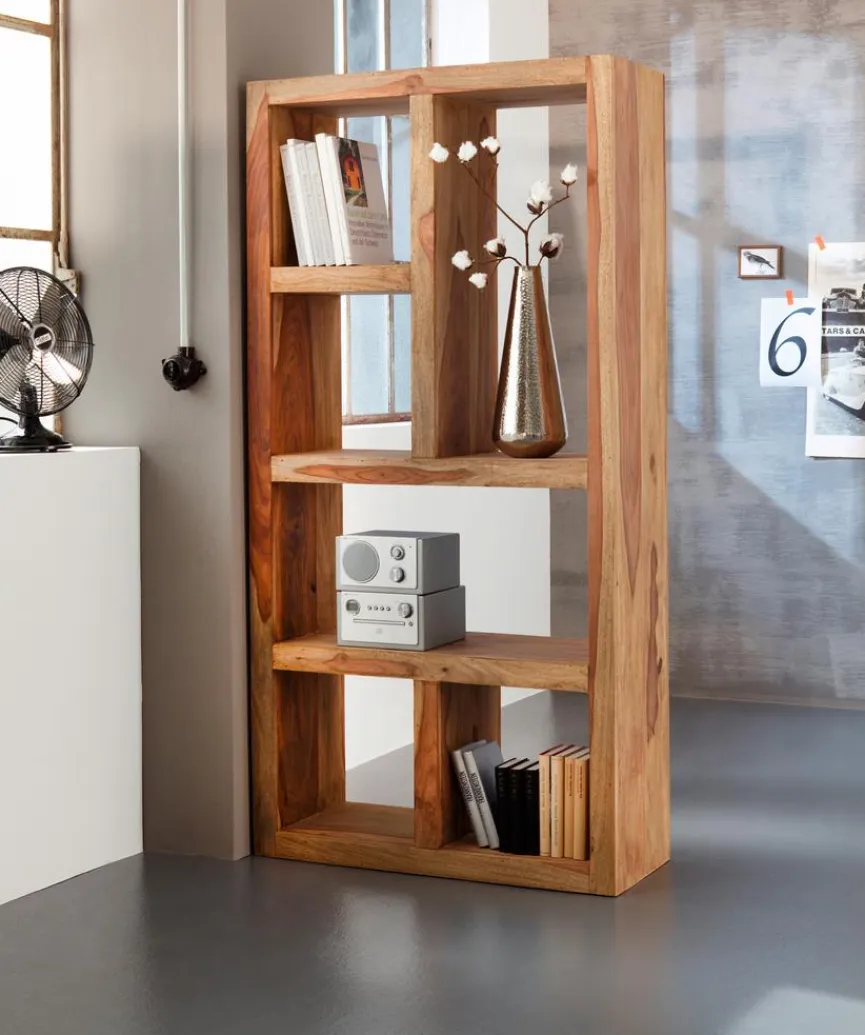 Eine unkomplizierte, transparent wirkende Strukturierung des Wohnraums ermöglicht der aus Massivholz gefertigte Raumteiler Yoga der Marke WOLFMÖBEL. Von praktischem Nutzen sind zudem die sechs unterschiedlich großen Regalflächen des zu beiden Seiten offenen Raumtrenners, die Ablagemöglichkeiten und Stauraum für dekorative Objekte und viele weitere Utensilien bieten. Der Raumteiler Yoga von WOLFMÖBEL ist ein robustes, stilvolles Ordnungsmöbel, das zu einer angenehmen Atmosphäre beiträgt.