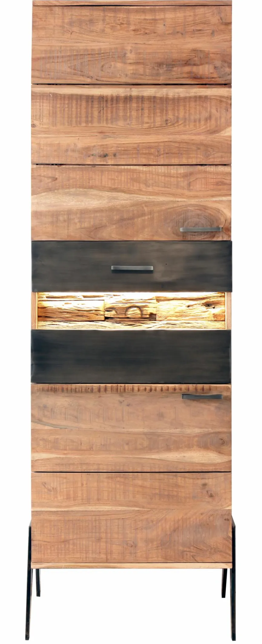Die Vitrine Hudson von WOLFMÖBEL punktet mit dem reizvollen Kontrast aus warmem Holz und kühlem Metallgestell, was ihr eine leicht schwebende Optik verleiht. Hinter zwei Türen und in einem Schubkasten bietet die Glasvitrine viel Stauraum, um Geschirr, Dokumente, Hobbyartikel oder andere wertvolle Dinge aufzubewahren. Egal, ob einzeln platziert oder in Kombination mit weiteren Stücken der Serie, die Vitrine Hudson präsentiert sich als trendiger Hingucker.