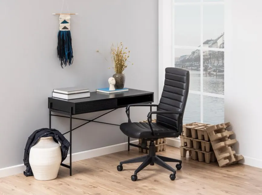 Mit seiner minimalistischen, geradlinigen Formensprache und seiner Farbgebung bringt der Schreibtisch Angus von Actona den angesagten Industriestil auf stylische Art und Weise ins Homeoffice. Auf seiner Oberfläche ist ausreichend Platz für einen Laptop, eine Lampe und Arbeitsmaterialien. Zudem bietet der Schreibtisch Angus nützlichen Stauraum unter der Platte.