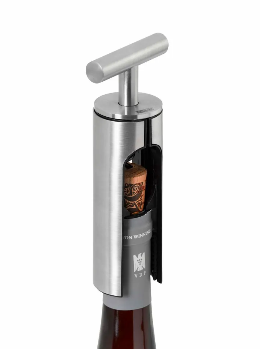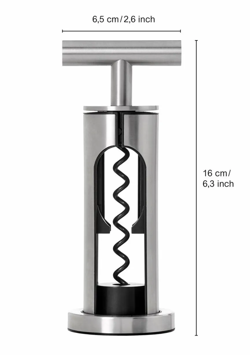 Der Korkenzieher Champ ist der perfekte Begleiter für jeden Weinliebhaber. Mit seinem schnörkellosen und geradlinigen Design aus Edelstahl ist er nicht nur funktionell, sondern bietet auch ein hervorragendes Handling. Einfach aufsetzen, drehen und schon lassen sich Natur- und Kunststoffkorken mühelos aus der Flasche ziehen. Im harmonisch abgestimmten Standfuß wartet der Korkenzieher Champ auf seinen nächsten Einsatz.