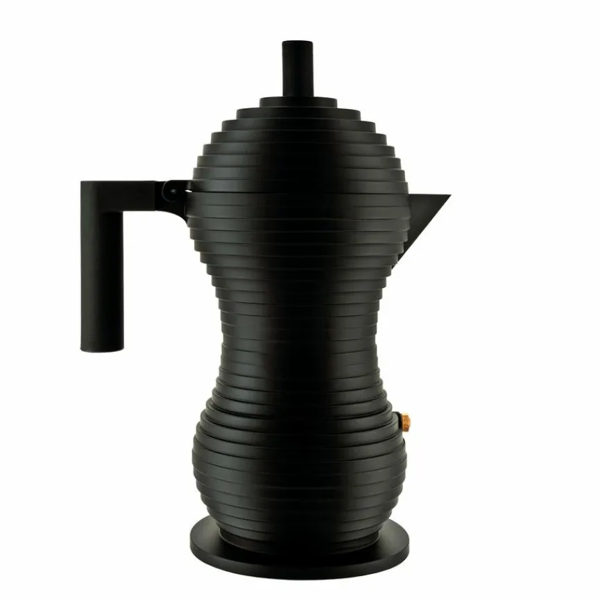 Der stylishe Espressokocher Pulcina von Alessi setzt nicht nur optische Akzente in der Küche. Schließlich überzeugt die Espressokanne ebenfalls mit praktischen Elementen wie dem V-förmigen Ausguss, der dem Verschütten von Flüssigkeit vorbeugt. Dank des sinnvollen Dampfkesselsystems verhindert der Alessi Espressokocher Pulcina einen bitteren Nachgeschmack.